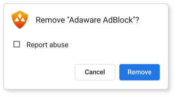 Haga clic con el botón derecho en el ícono de Adaware AdBlock en la barra de herramientas de su navegador y seleccione "Eliminar de Chrome...". Cuando se abra el siguiente mensaje, seleccione "Eliminar".